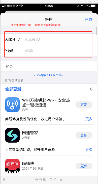 4. 下载完成后,为了您的手机安全,切记别忘记退出我们提供的AppleID,重新登录您自己的,谢谢!