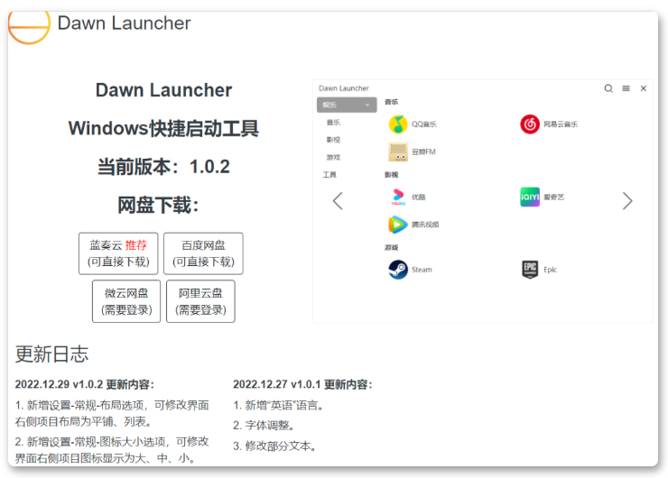 Dawn Launcher 官网已经上线,目前最新版为 V1.0.2,完全免费使用,由于目前还是软件开放初期,后期作者可能会新增更多功能。